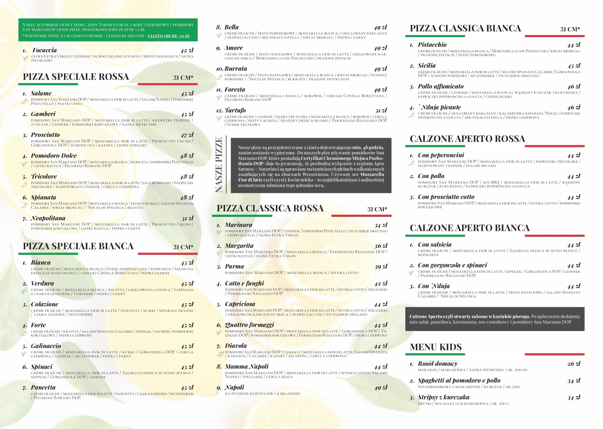 Podstawą naszej oferty są dania kuchni neapolitańskiej, jednak w karcie znajdziecie również smaki inspirowane innymi łoskimi regionami, takimi jak Toskania, Piemont czy Emilia-Romana.